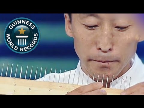 வாயினால் அதிகமான ஊசியில் நூல் கோர்த்து சாதனை